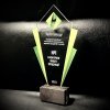 Нагорода виготовлена з екологічно безпечної деревної пресованої плити в комбінації кількох сортів деревини: береза, вільха, інші листяні породи; а також із міцного акрилу.
