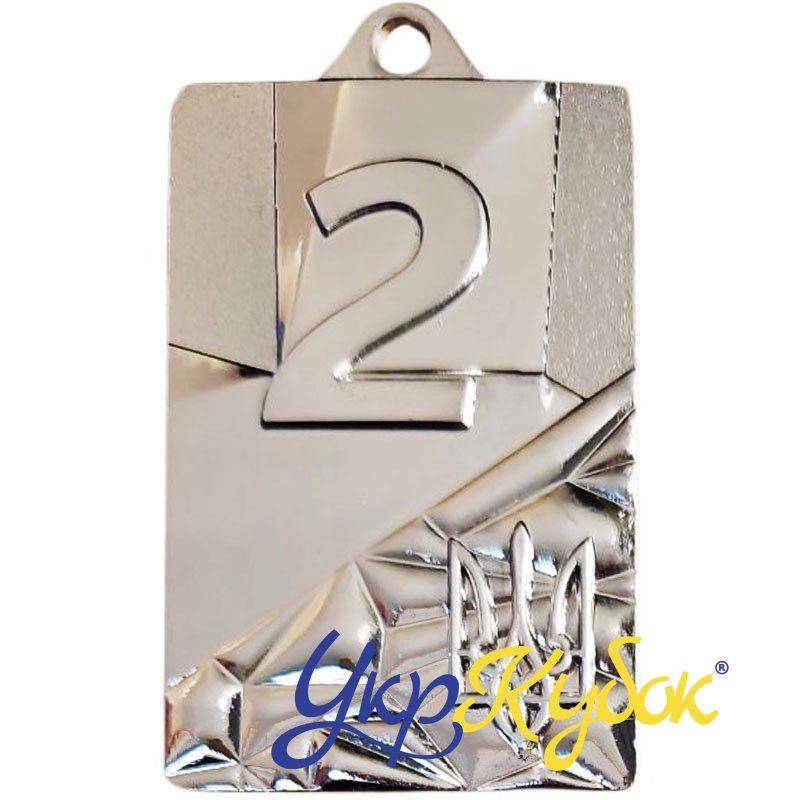 Медаль прямоугольная Украина 2 место 66*43 мм серебро может использоваться для награждения участников на турнирах, соревнованиях, конкурсах. В интернет-магазине УкрКубок в наличии: статуэтки, фигурки, кубки, медали, ленты, призы, спорт наградная атрибутика, таблички, дипломы, которые можно срочно заказать с нанесением в Украине. Производство и продажа.