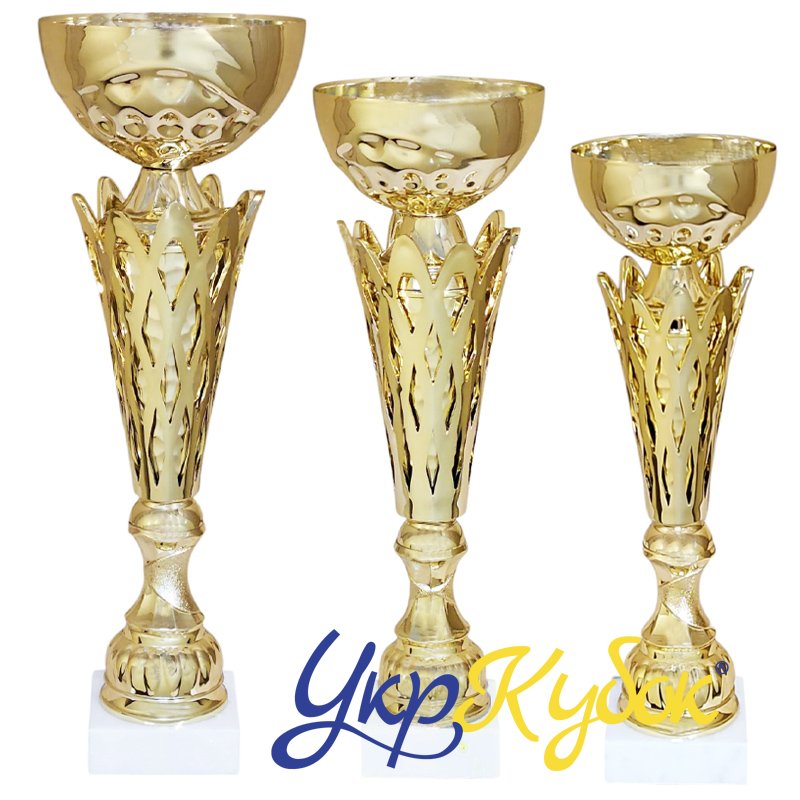 Награда Комплект кубков Высота: 29,5 см, 26 см, 24,5 см может использоваться для награждения участников на турнирах, соревнованиях, конкурсах. В интернет-магазине УкрКубок в наличии: статуэтки, фигурки, кубки, медали, ленты, призы, спорт наградная атрибутика, таблички, дипломы, которые можно срочно заказать с нанесением в Украине. Производство и продажа.