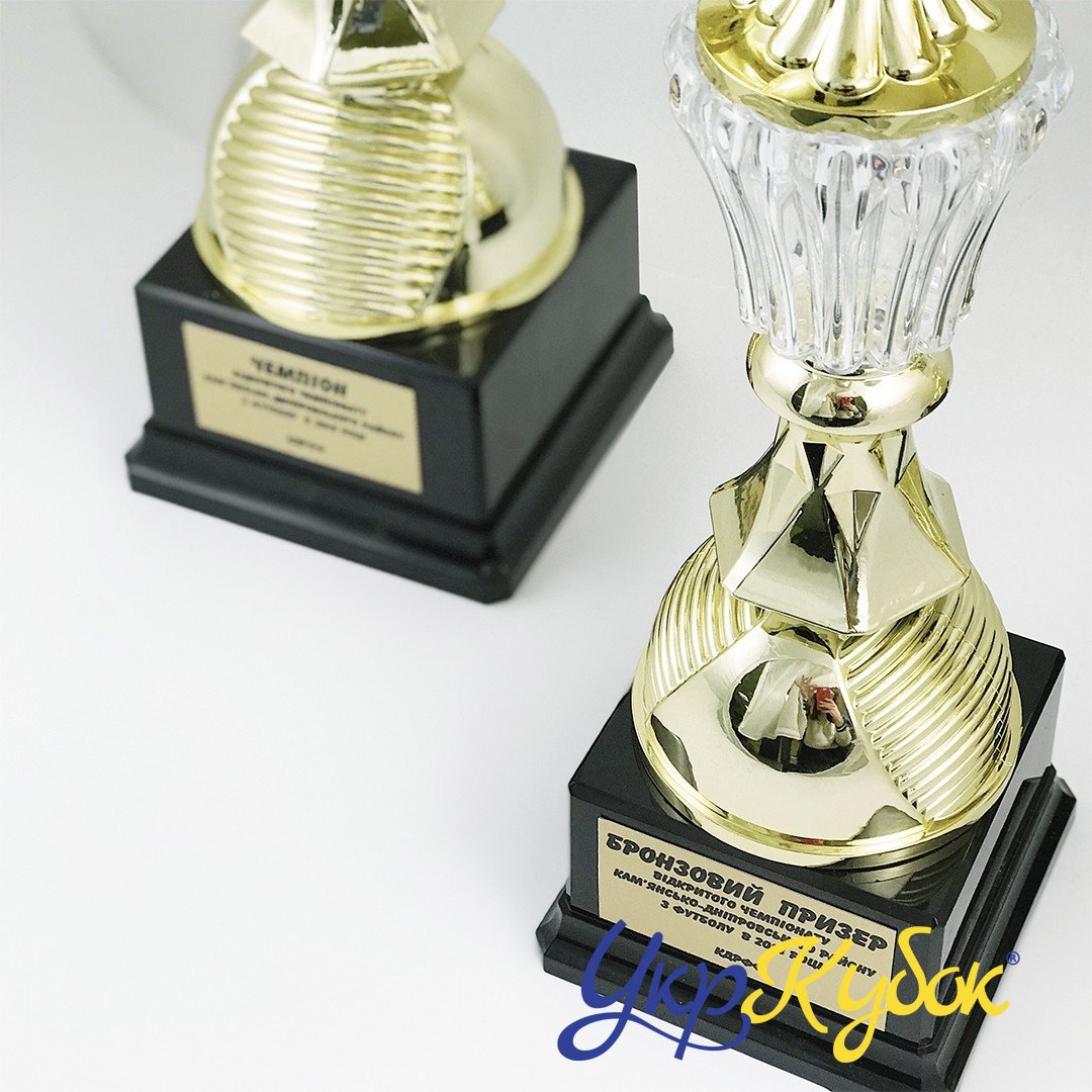 У цьому розділі представлені деякі роботи, зроблені на замовлення в компанії УкрКубок. У Вас є можливість оцінити якість нанесення на різних нагородах, статуетках, кубках та медалях. Також, Ви можете подивитися, наскільки та чи інша основа підходить до статуетки. Щоб замовити товар, перейдіть у вкладку "Супутні". Якщо ця вкладка відсутня, Ви завжди зможете отримати консультацію у наших операторів.