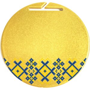 Нагорода Медаль із Металу (сталь) товщиною 2 мм. У базову вартість вже входить медаль діаметром кола 60 мм без візерунку. Додатково можна вибрати стрічку 20 мм будь-якого кольору або з Вашим логотипом, а також УФ-друк на основній частині, та із зворотного боку.